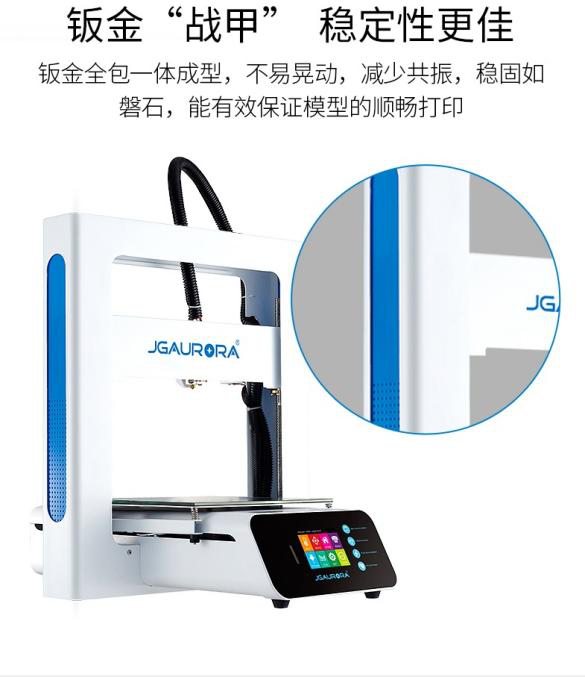 3D打印机是一种新兴制造工具,而工具本身的根本要求是能经受长期使用、能保证稳定的产出质量。在市场上桌面级3D打印机不??刂瞥杀臼?,极光尔沃仍然坚持质量第一的标准,机身采用了一体钣金制造,9kg的全重是品质的直观表现。洁白机身与品牌蓝调点缀,造就大气的高雅外观。多功能触控系统操作便捷。干练的造型体现出极简的科技最终追求。专业化的工业外观设计,传递出有情感,有品味,科技向上的品牌态度