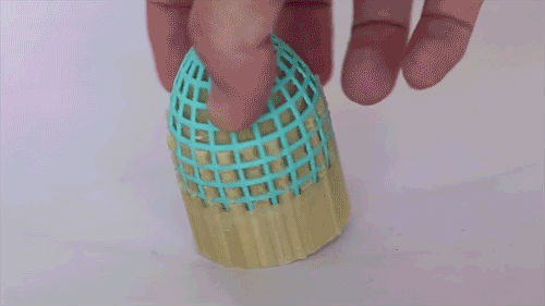 可以做人体等带硬骨架的软模型:TPU材料做皮肤,PLA材料做骨骼,通过双喷头复合打印,便能得到一个具有骨架、具有软表面的模型。