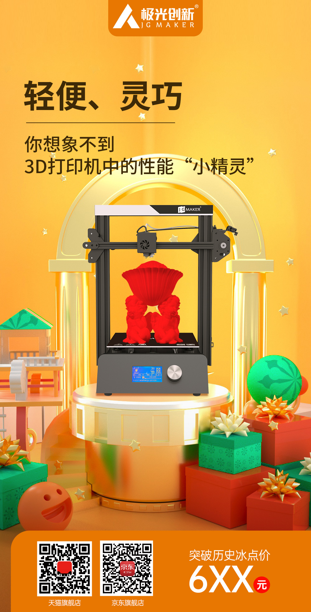 如此性能卓越的机型,再配合双十一年度钜惠价,低至2XXX元,可以称得上是史无前例的优惠力度,让3D打印唾手可得。