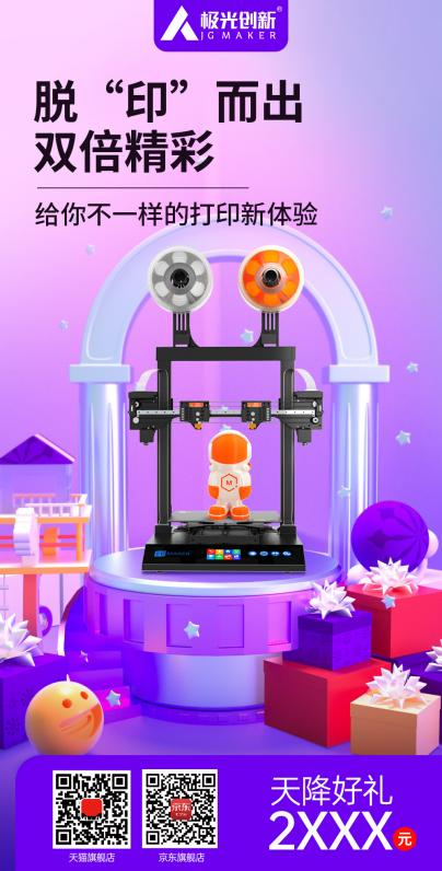 当然,除了以上提到的机型,你还可以在极光创新天猫或京东旗舰店选购其它类型的3D打印机相关产品。时值双十一购物节到来之际,极光创新旗下多款爆款产品折扣力度惊人,购买同时还有多种好礼相送,对于近期有购机计划的朋友千万不要错过此次的双十一购物狂欢节。