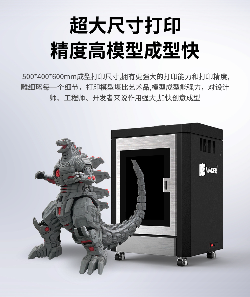 作为工业应用的系列产品,两款设备虽有相同的运动结构,却又各具特色。除了拥有500*400*600mm的超大打印尺寸外,A9PRO更是大幅提升打印速度,10-150mm/s的打印速度,让单台设备可缩短30%-50%的打印时间,大大提升效率。