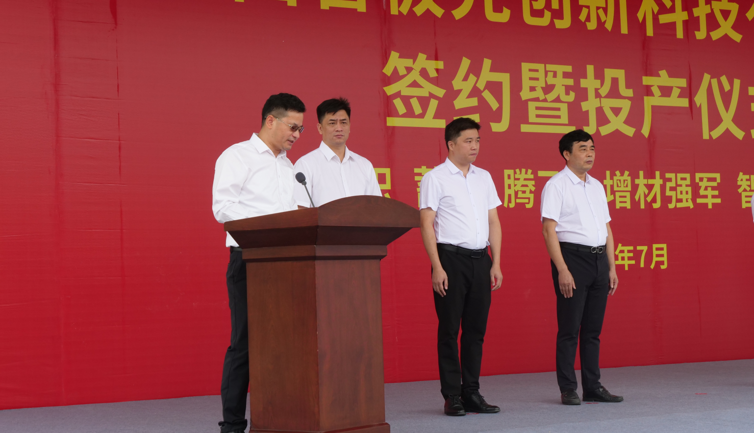揭牌仪式上,深圳市极光创新科技股份有限公司、江西省极光创新科技有限公司董事长陈晓海先生首先发表了致辞,陈晓海先生对现场的所有领导和来宾表示了热烈的欢迎和诚挚的谢意,他表示,江西省极光创新科技有限公司的竣工投产,是极光创新集团化战略发展的重要一步,同时也意味着极光创新又迈上了一个崭新的跨越式发展新台阶。