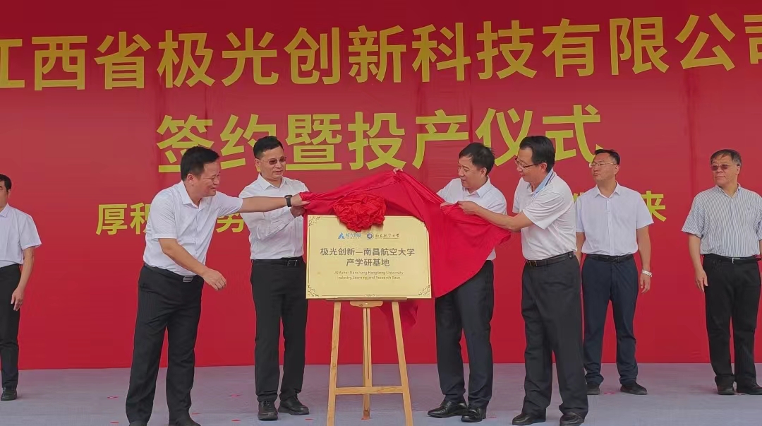 校企合作,不仅能提高教育培养人才的力度,也有利于企业的发展壮大,活动现场,宁都县委副书记、宁都县县长何国杰,极光创新科技股份有限公司董事长陈晓海,南昌航空大学校长卢超,中航工业集团领导、极光创新科首席顾问唐军,正式为南昌航空大学产学研合作基地揭牌,这也意味着南昌航空大学产学研合作基地正式成立!