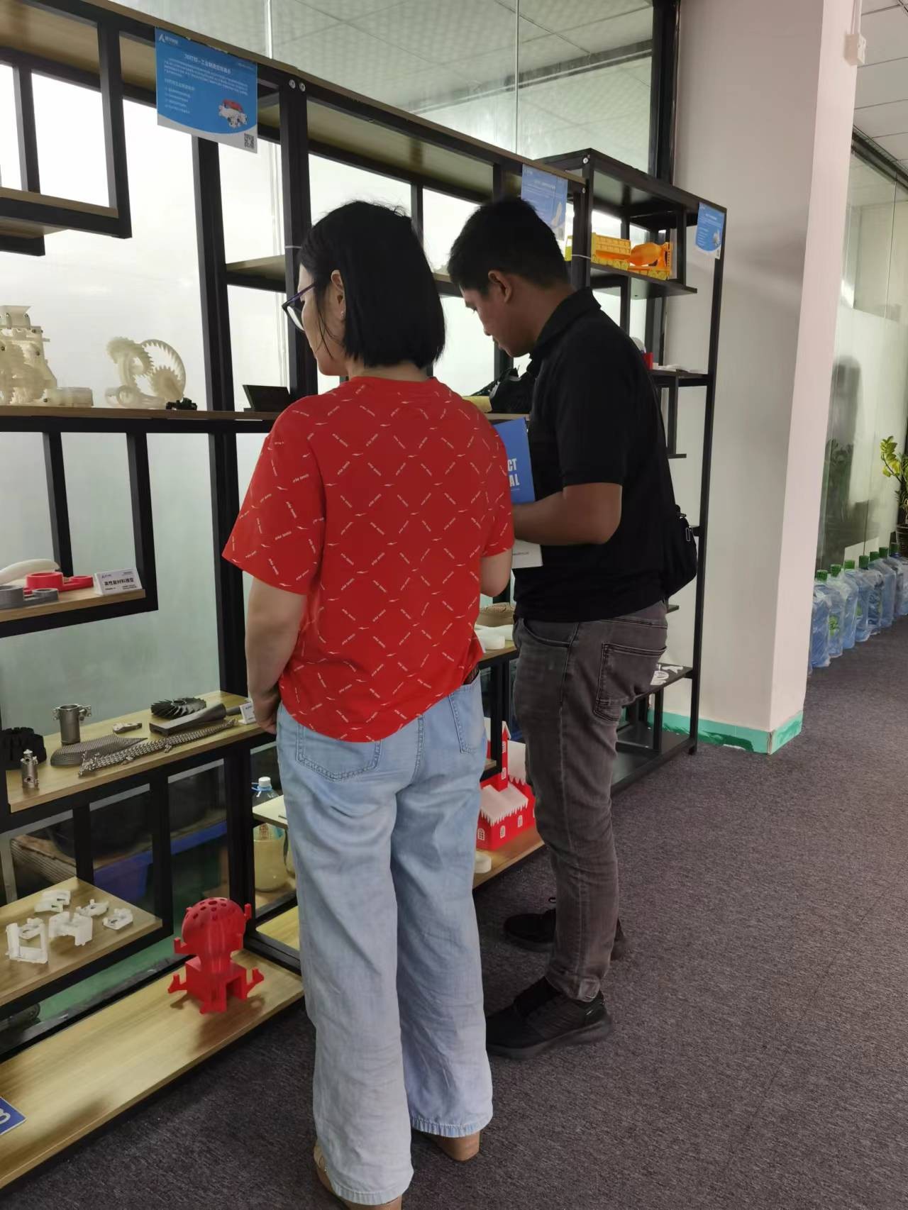 随后,Dennielle还在极光创新海外团队的陪同下,参观了公司的模型展示区、SLA产品展示区、用户服务中心和后处理车间等区域,通过走访,Dennielle对此次探访极光创新深圳总部之行表达了高度的肯定,他认为,此次探访极光创新,让他再次肯定了自身的判断,极光创新丰富的产品线、严谨与创新的企业文化、不断钻研的研发实力,以及整个团队的专业素养和对细节的关注让他留下了深刻的印象。