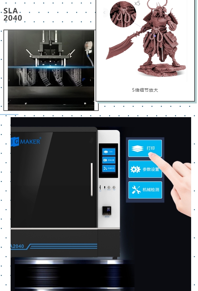 极光创新SLA 2040采用全钣金封闭式机箱设计,高端核芯搭配智能算法,加上内置的温度控制系统可保障打印作品稳定输出,四季从容。