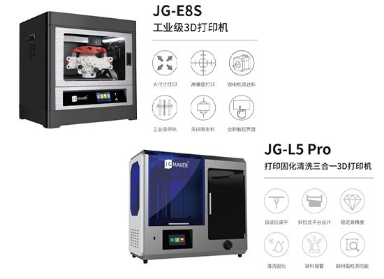 JG-E8S是极光创新推出的一款高性能工业级FDM 3D打印机,凭借卓越的打印精度和稳定性,现已广泛应用于汽车制造、玩具应用、电子器械等领域,备受行业用户的青睐。