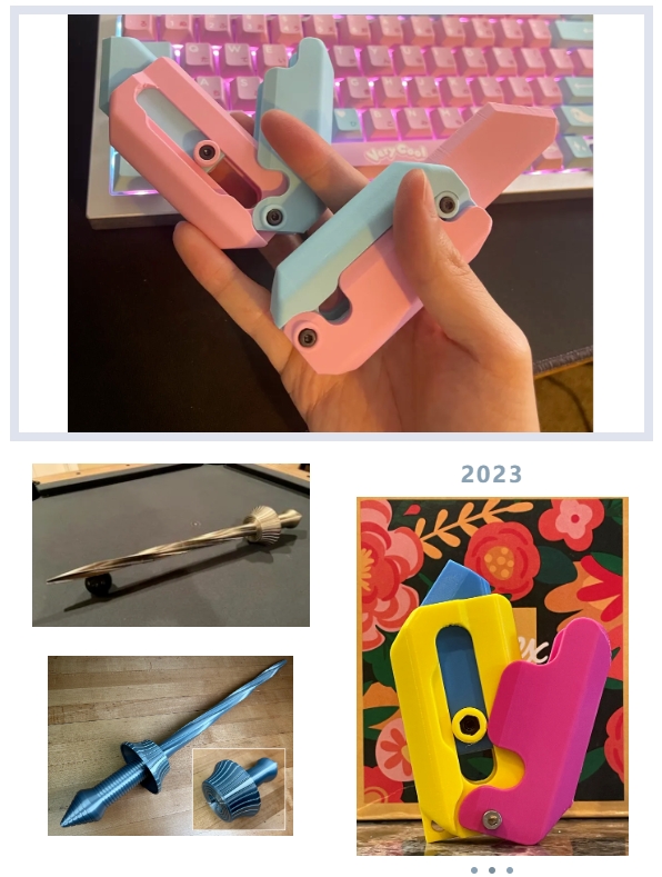 近期我们也对2023年最受欢迎的3D打印模型做了汇总,不出意外,碧云龙、萝卜刀、蝴蝶刀、伸缩剑等,都在其列。