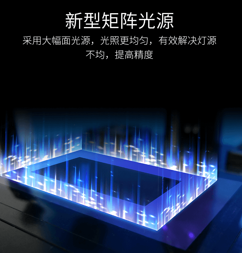 光固化3D打印机,最重要的是光学固化系统,极光尔沃G3采用了行业主流的平行矩阵光源,4X7矩阵紫外灯珠搭配透镜,让紫外光源更均匀且平行投射,固化模型边缘更锐。有了稳定的固化光源,当然少不了LCD固化屏,LCD固化屏置于紫外光源的上方,主要作用是显示固化区域,让屏幕显示透明图形区域,紫外光投射透明区域照射光敏耗材使其固化。