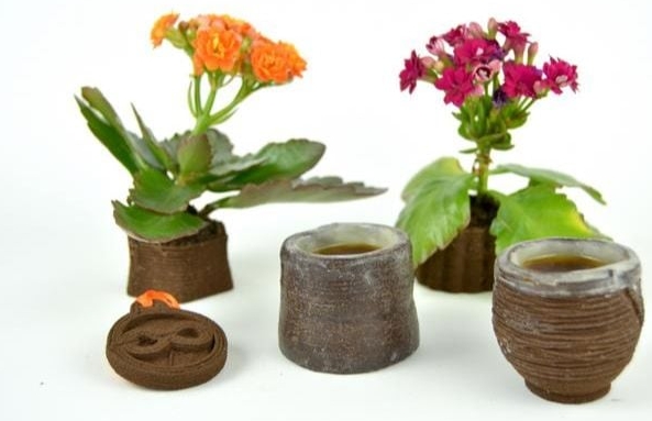 3D打印咖啡渣材料是将咖啡渣与黄原胶和纤维素胶(食品中常见的植物增稠剂)等成分混合后而形成的3D 打印的混合物。然后,利用改良过的3D打印机通过层层堆积制作成一个个坚固耐用的作品。