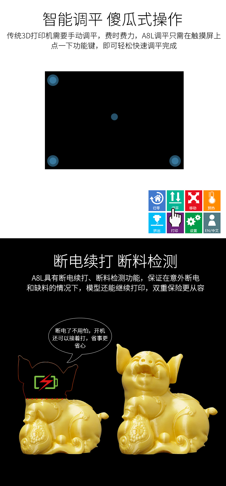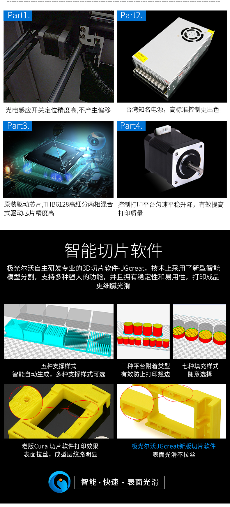 全球首创双电机传动送料结构,并配备高品质德国进口配件,打印精度媲美艺术品,这是一款追求“精确、精密、精致”的3D打印机。
