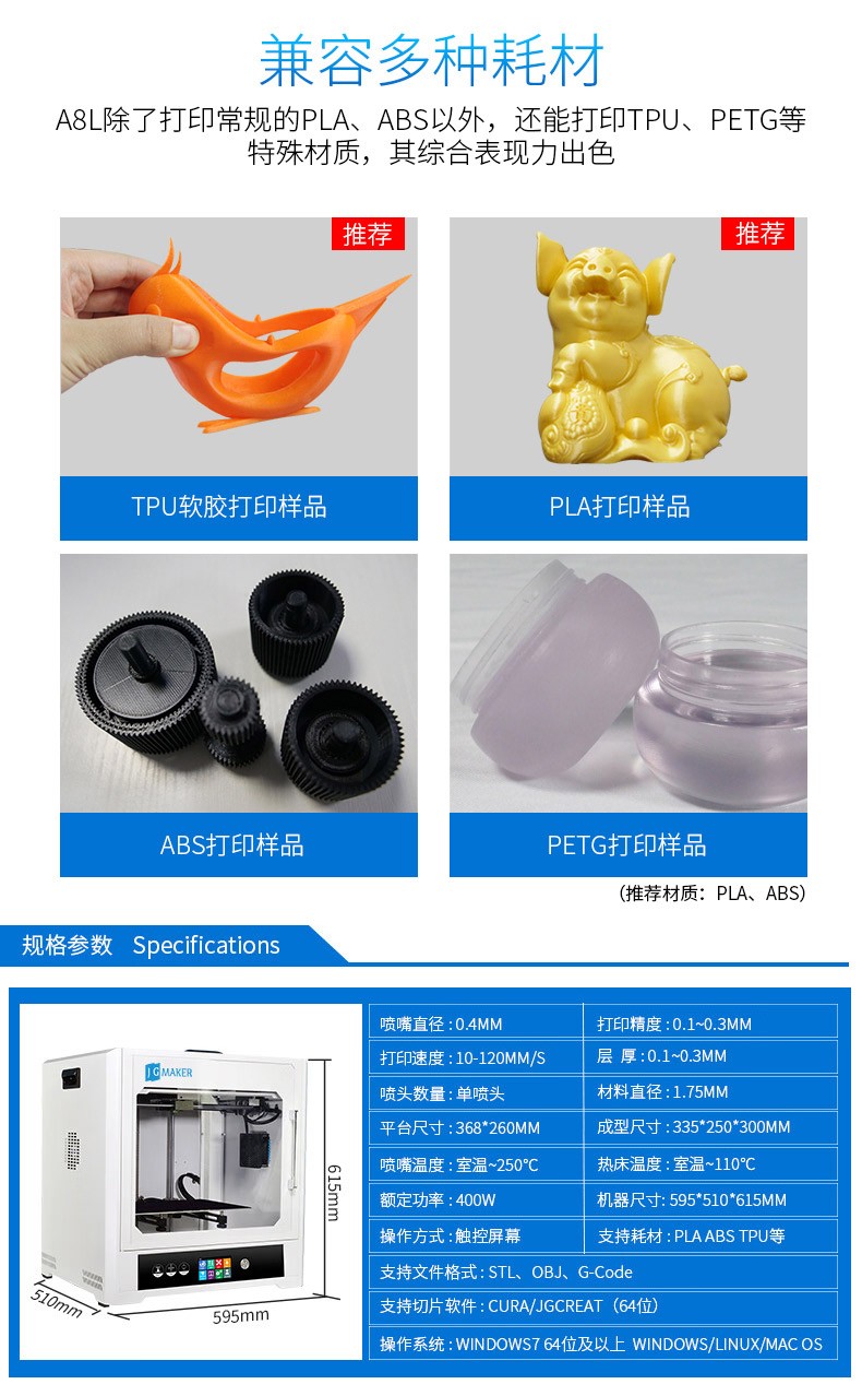 JG-E8L 商用级高精度3D打印机