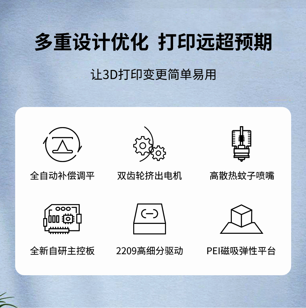 成型尺寸 500*400*600mm,拥有更强大的打印能力和打印精度,雕细琢每一个细节,全新升级,全自动补偿调平,打印模型堪比艺术品
