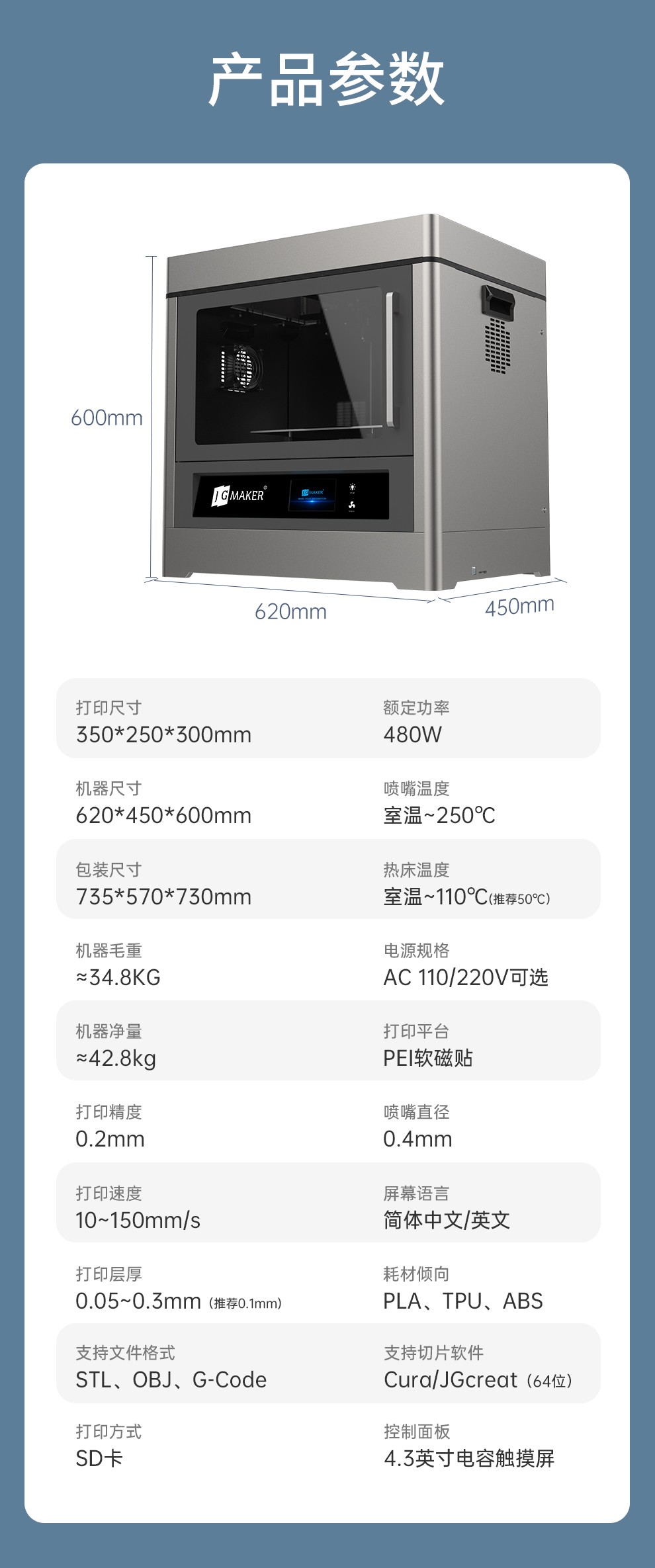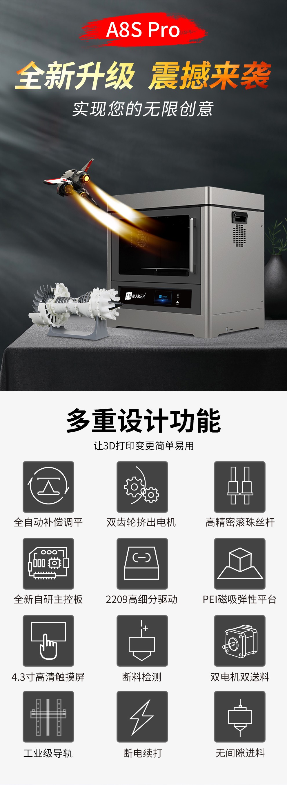 JG-A8S Pro 工业级3D打印机