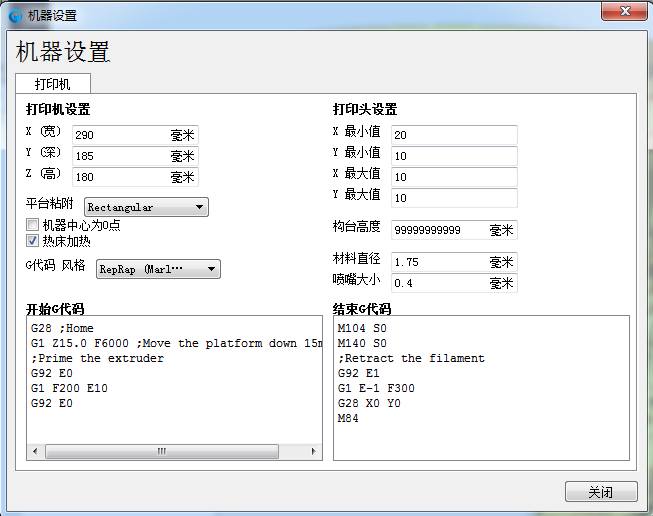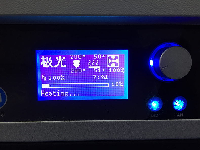 最后我们要设定打印头及打印板的温度,早先的机器我们一般需要事先将其加热到一定温度,进入一个预备打印的状态,而现在的机型打印头大多能够迅速升温,所以我们一般不需要“预加温”这一过程,不过还是要事先设定好一个温度。