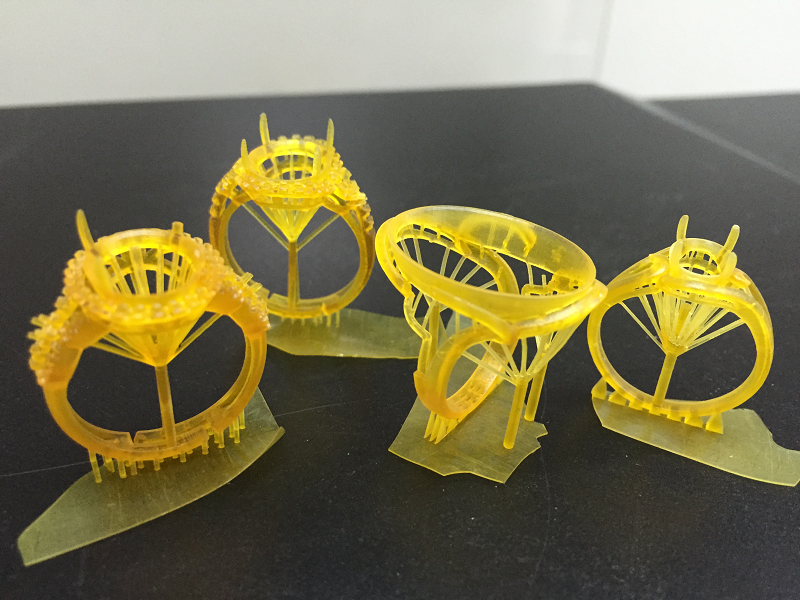 高深点讲,光敏树脂是由光引发剂,单体聚合物与预聚体组成的混合物,这种材料可在特定波长紫外光聚焦下完成固化,一般用于SLA/DLP机型之中。使用光敏树脂材料打印出来的物品,表面较为光滑、成型质量高,所以许多DLP机型被定为珠宝级别。