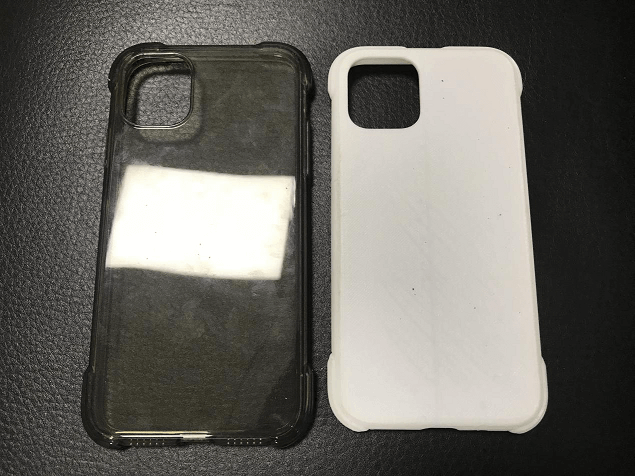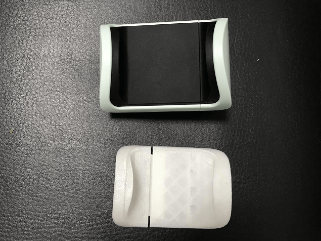 3D打印手机壳白模展示,对比实物图,可以看得出来,大小尺寸经过研发工程师的修改,更合适配套新款手机尺寸。
