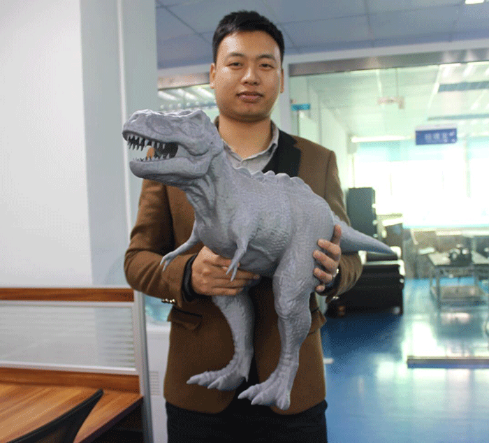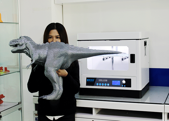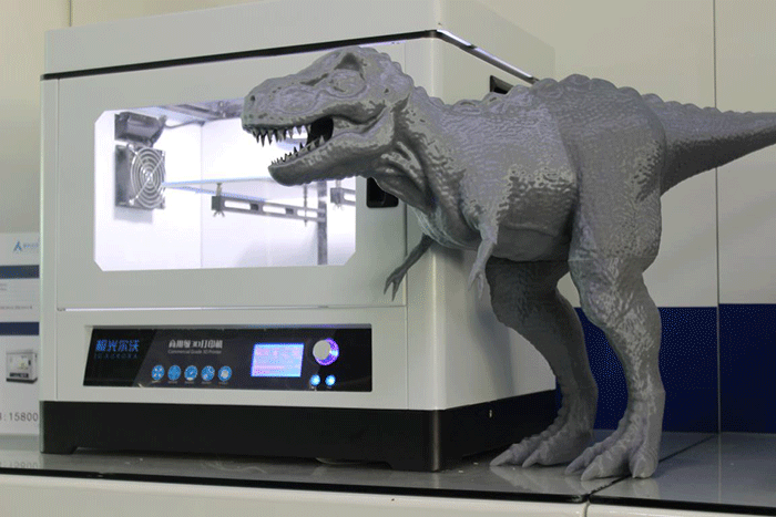 大恐龙是怎么3D打印出来的?极光尔沃的恐龙爱好者介绍:“其实也没想象中那么难,只需要建好模型,用软件转一下代码,就可以3D打印出来了,如果不会建模,也可以直接到一些3D云平台下载,素材也相当丰富,差不多都可以找到自己想要的模型。”
