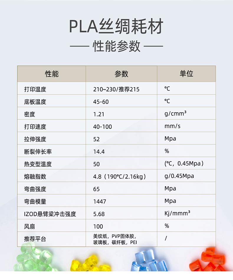 打印温度:210~230/推荐215密度:1.21g/cmm3